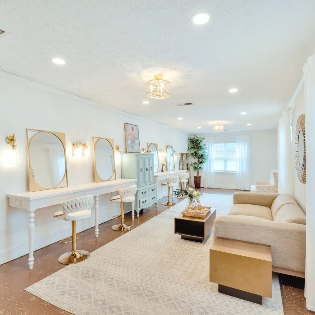 A light-filled space for quiet moments, meaningful prep, and slow mornings with your favorite people. With four hair and makeup stations, a private bath with shower, a full kitchen, and mirrors throughout, it’s as practical as it is beautiful. Designed to feel calm, comfortable, and ready for a love story to begin.