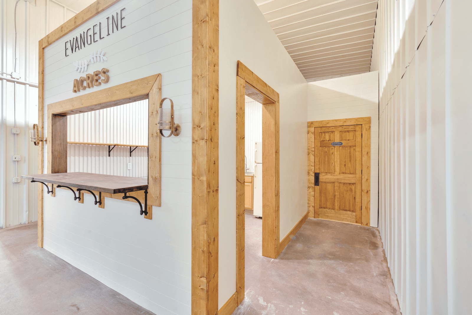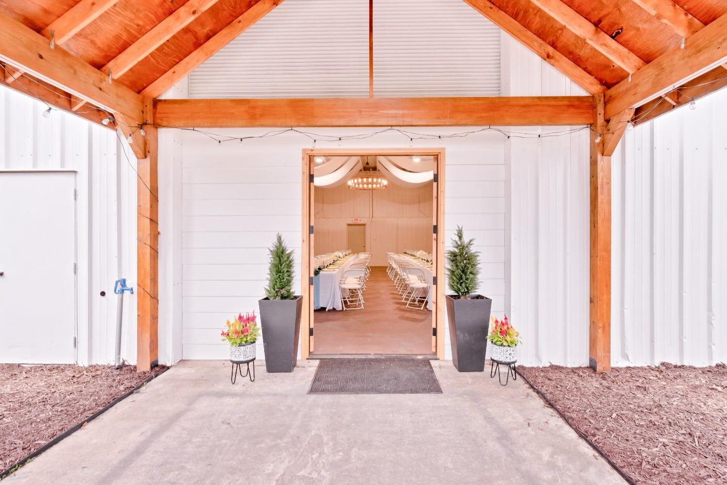 Cedar Hall is a warm, wooden space filled with soft light and high ceilings. With white walls and an open layout, it’s easy to make it feel like yours—whether your vision is rustic, elegant, or something in between. It comfortably seats up to 150 guests inside, with space for 50 more just outside under the awning. Thoughtful touches like a service area, accessible restrooms, and climate control ensure everyone feels comfortable, no matter the season.