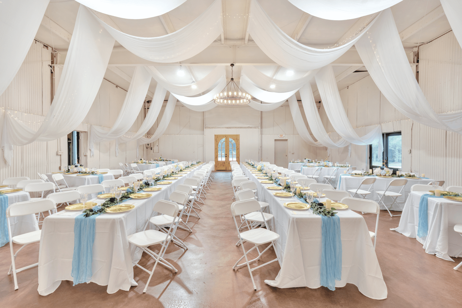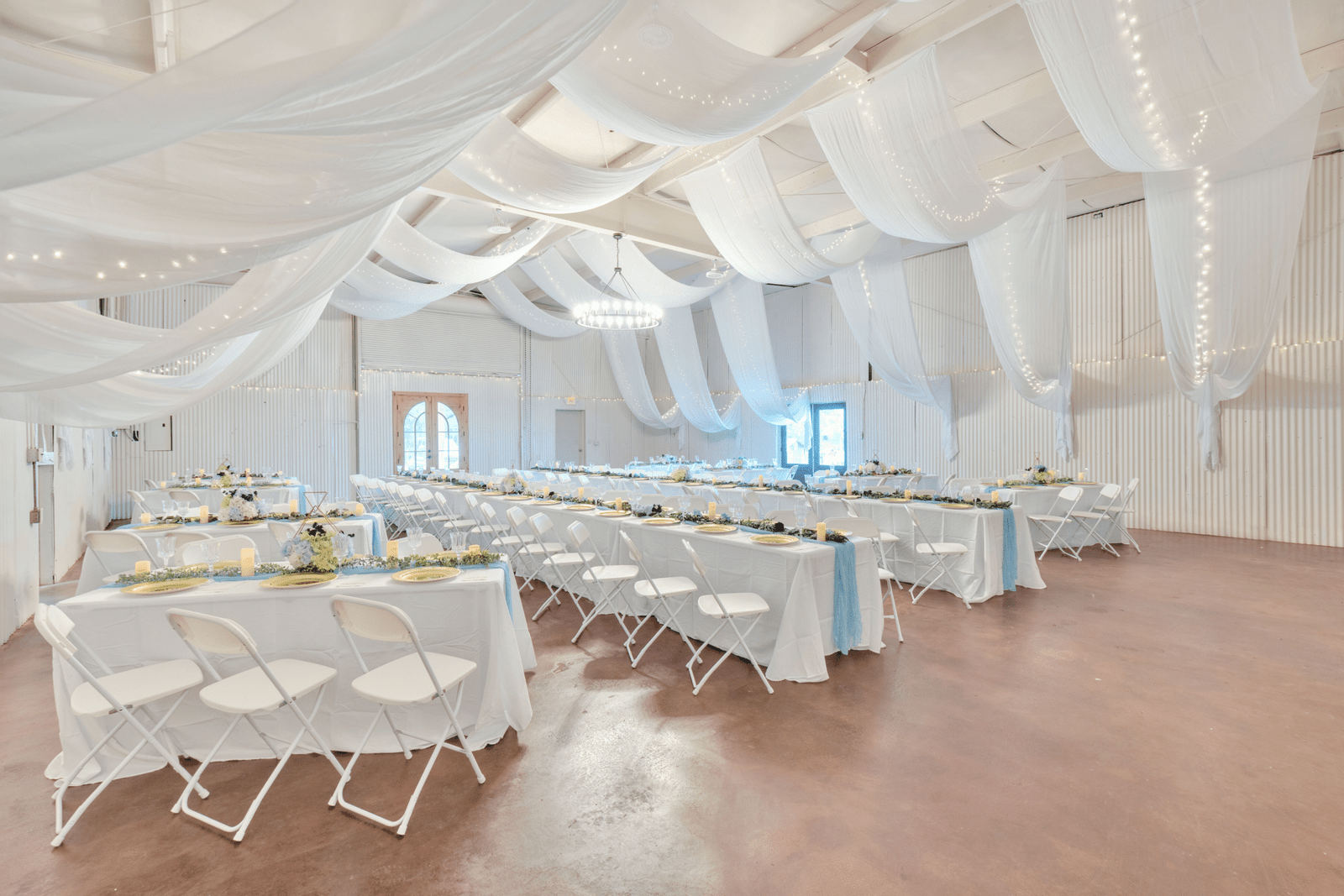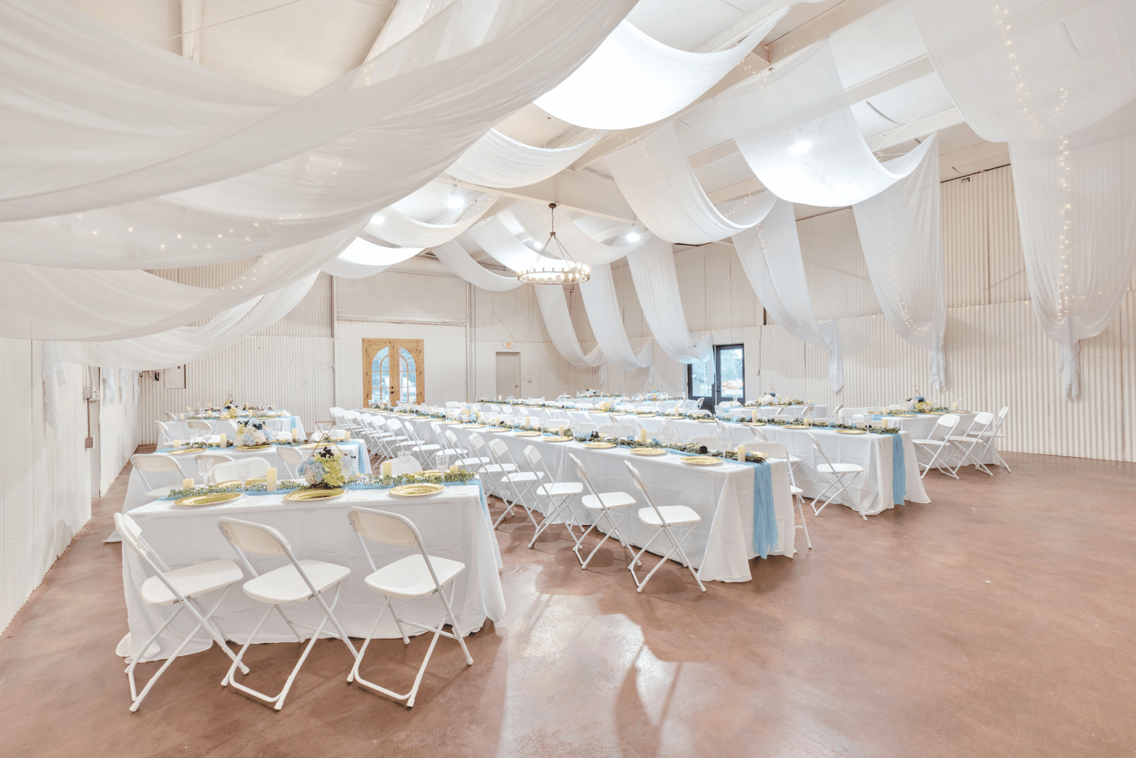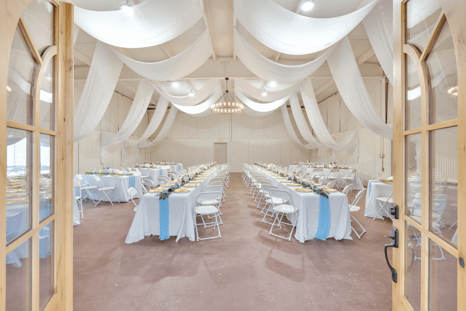 Cedar Hall is a simple indoor space for intimate or grand gatherings. With white walls and an open layout, it’s easy to make it feel like yours—whether your vision is rustic, elegant, or something in between. It comfortably seats up to 150 guests inside, with space for 50 more just outside under the awning. Thoughtful touches like a service area, accessible restrooms, and climate control ensure everyone feels comfortable, no matter the season.